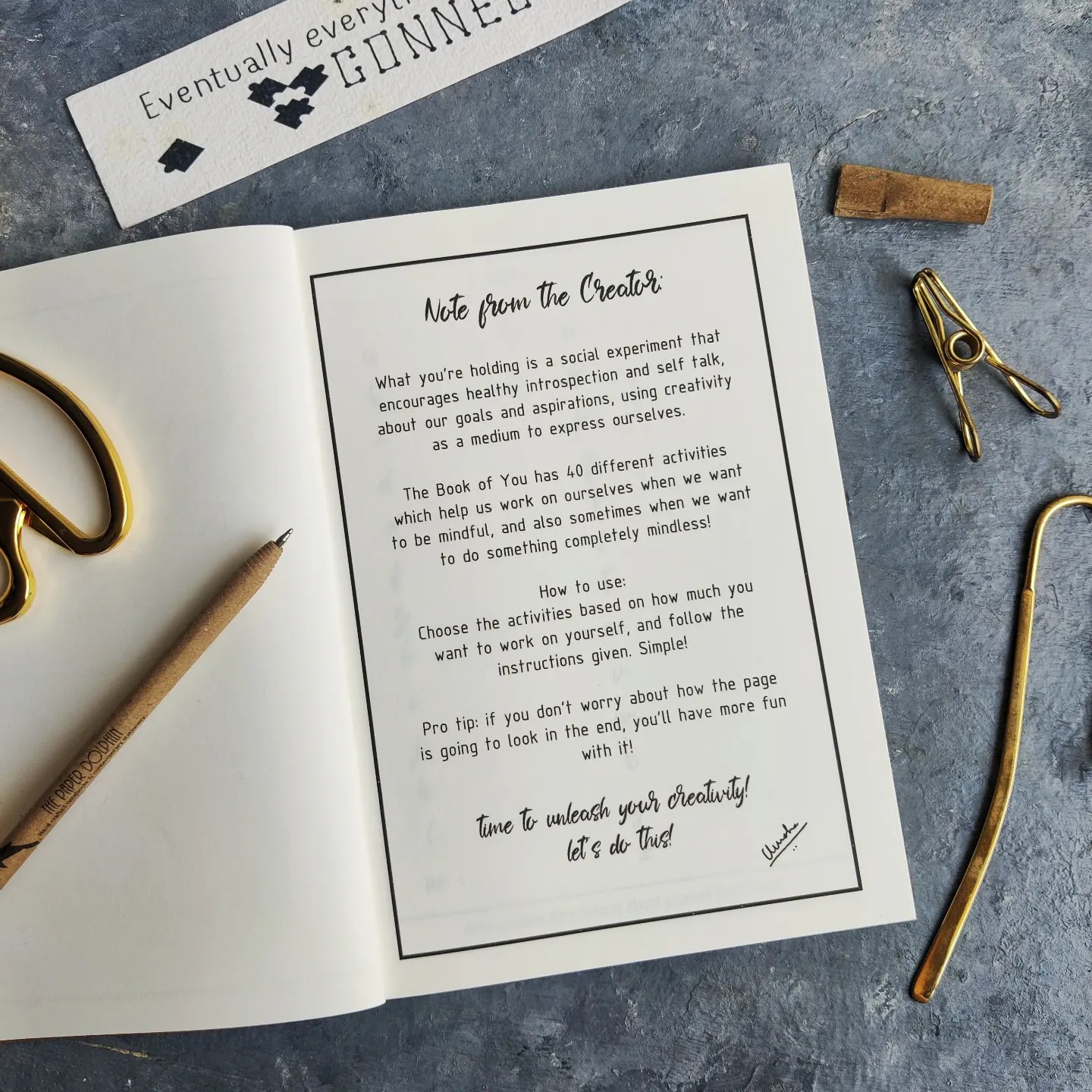 The Book of You is a mindful companion for anyone who wants to pause and look inward. It’s filled with 40 guided activities, each designed to be done once a week, giving you space to reflect, express, and reconnect at your own pace. After the activities, you’ll find blank pages to jot, doodle, or freely unload your thoughts whenever you need to.